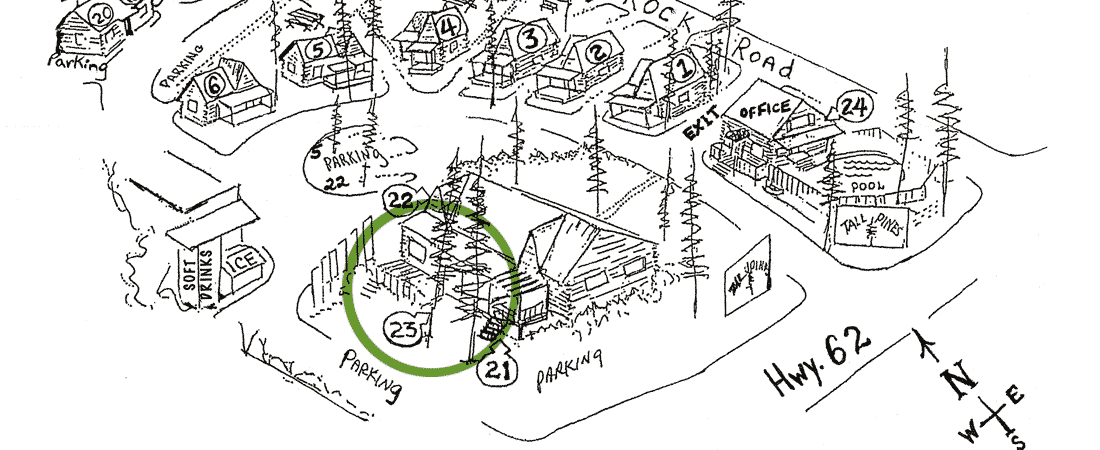 Cozy Hideaway Suite #23 is one of three Suites in the Historic Lodge built in 1947, listed on the National Registry of Historic Places, and featuring exquisitely preserved genuine log and chinking. Amenities include a queen bed, two-person heart-shaped jetted tub, and a large private porch.